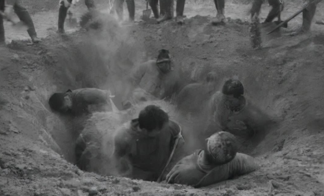 听说要活埋这些日本鬼子,村里的老百姓欢呼雀跃拿起铲子直接跑到了山崖顶上,一铲子一铲子地把黄土扔向土窑洞。