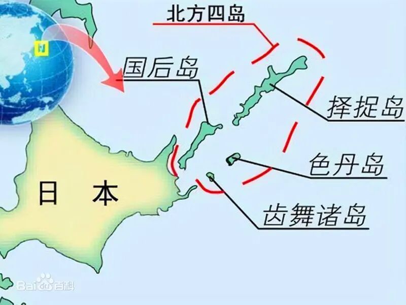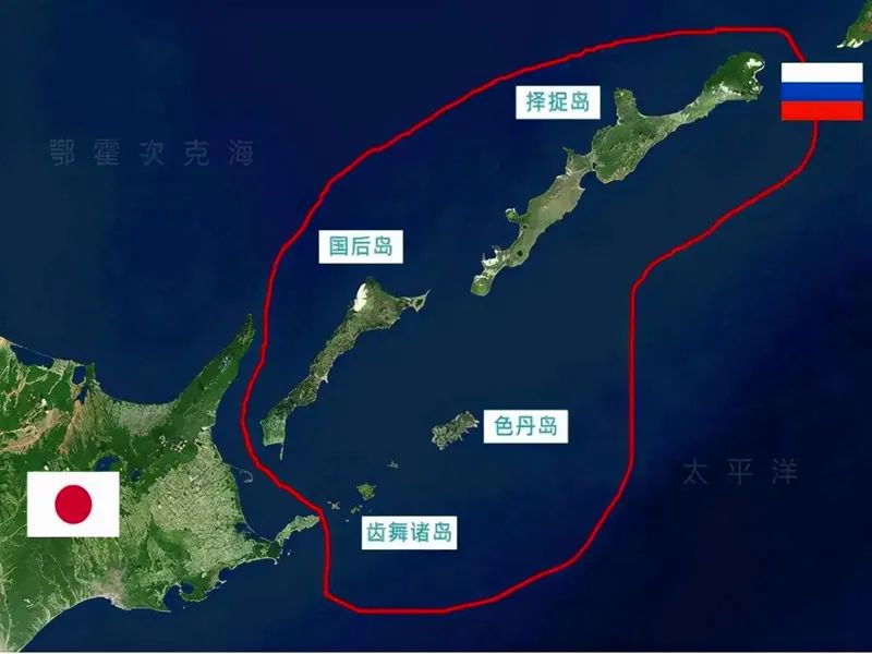 在新中国成立初期,为了使双方都不得罪,中国在地图上将这个四个岛屿(南千岛群岛)标注为苏联领土,但是使用了日本的名字(北方四岛)。