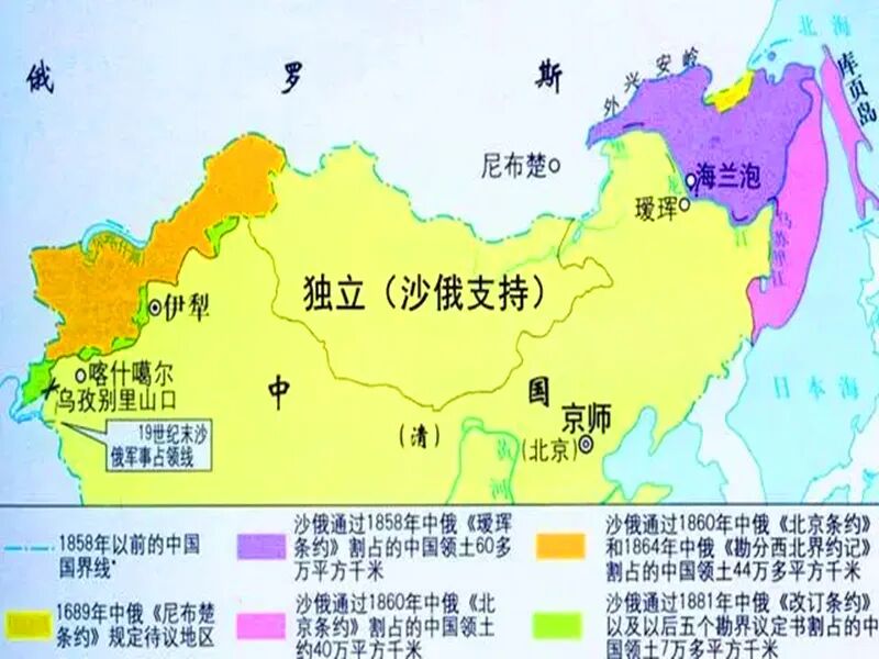 在众多列强中,各国签订不平等条约的爱好也是不同的。英国喜欢搞租界,免费开放通商口岸,日本喜欢获得大量的赔款,沙俄则喜欢侵占中国大量的土地。在中国近代短短几十年,沙俄就从中国割走了310多万平方公里的领土。