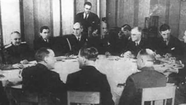 于是1943年下旬,美、苏、英三大巨头几次三番的在德黑兰举行会议,不停讨论的便是组建联合国后常任理事国的相关事宜。