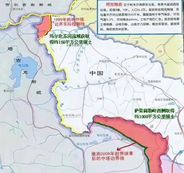 在谈判中,双方互谅互让,平等协商,中国在中塔边线南段取得萨彦阔岭以西1000多平方公里土地实际控制权,不再主张剩余争议区主权。
