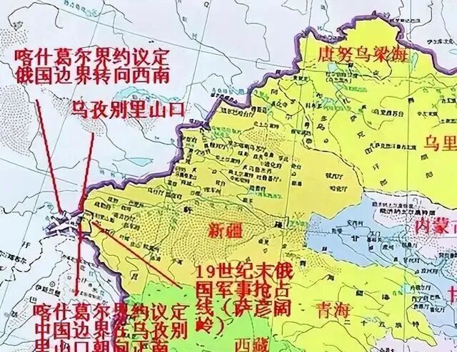 新中国成立后,在苏联举行的中苏边界谈判,中方提出,三角形待定区苏联占了就算了,乌孜别里山口竖直向正南与萨雷阔领间28,000平方公里半月形土地必须归还。