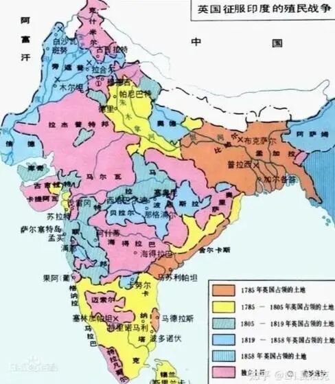 印度碰到英国之前,是一堆细碎的小土邦。当然,当时的印度北部有莫卧儿王朝。但莫卧儿王朝的统治范围,还没有涉及整个印度的地界。