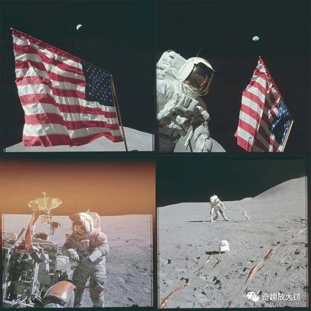 除以上的猜测外,有人专门分析了美国宇航员在月球插上国旗的照片,很明显看得出国旗竟然在随风飘荡,这简直颠覆了我们的认知,众所周知宇宙是没有空气的,哪来的风!而且照片中的阴影不对劲等,面对大众的质疑声,美国没有做出解释。
