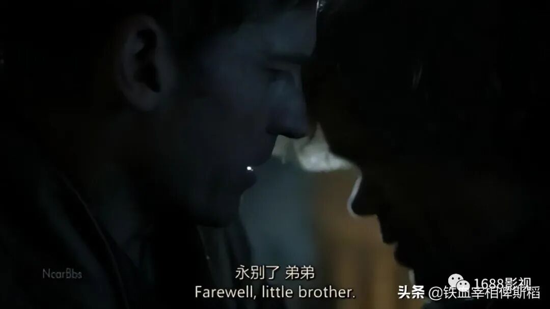 图28 小恶魔被审判后,哥哥詹姆士上校偷偷送他逃跑,两个腥风血雨中的男人一声道别从此浪迹天涯,或许这种兄弟情深在到处是欺诈,遍地是背叛的游戏中才更显珍贵和动人吧