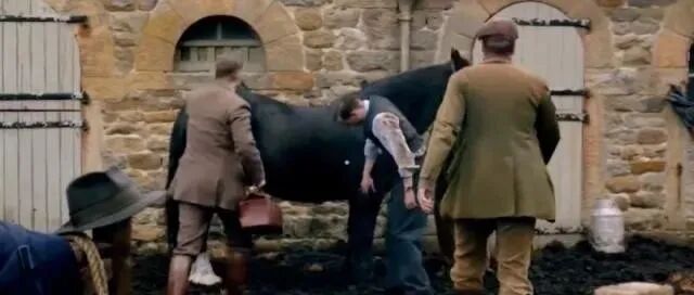 法南把哈利带到了一处农场,这家农场场主反映说自家的马有一条腿有问题,要求兽医帮忙医治。