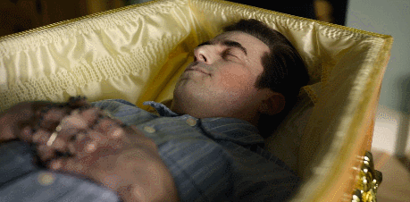 然而葬礼上,还来了不速之客——两位保险调查员。其中一个演员极为眼熟,定睛一看,原来是前不久大火的电影《祝你好运,里奥·格兰德》里的小帅哥。