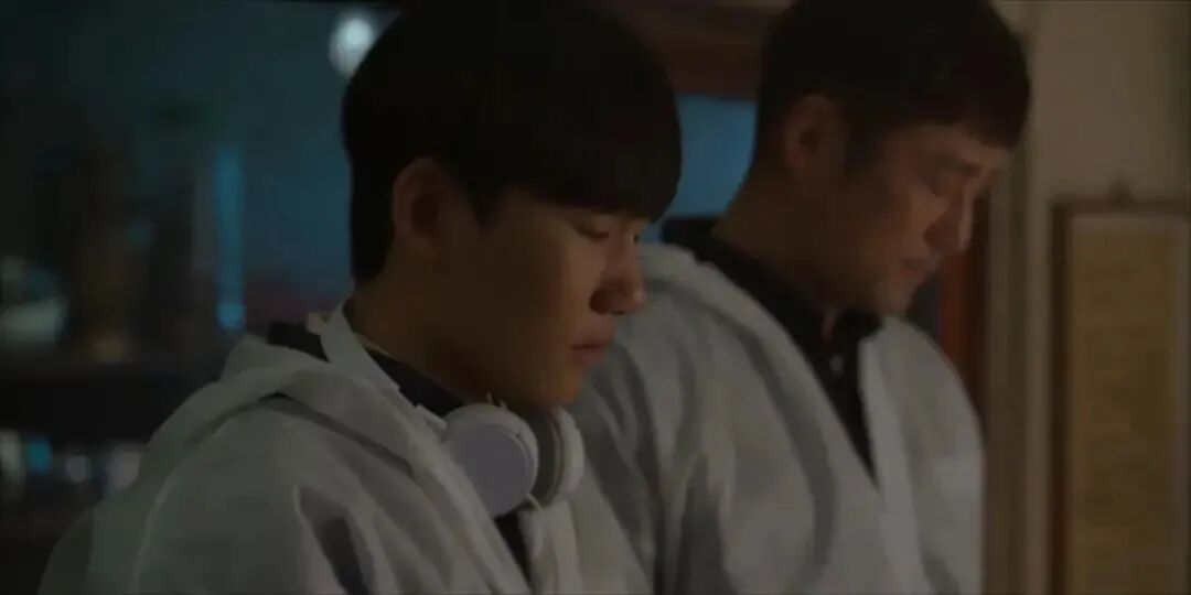 每次工作开始前,男主角韩可鲁都会和父亲一起脱帽,虔诚地立于房间一角向逝者致意。