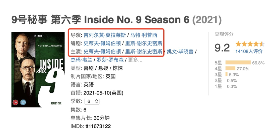 导演: 吉列尔莫·莫拉莱斯编剧: 史蒂夫·佩姆伯顿主演: 史蒂夫·佩姆伯顿 / 里斯·谢尔史密斯类型: 喜剧 / 悬疑 / 惊悚地区: 英国首播: 2021-05-10(英国)季数: 6集数: 6单集片长: 30分钟