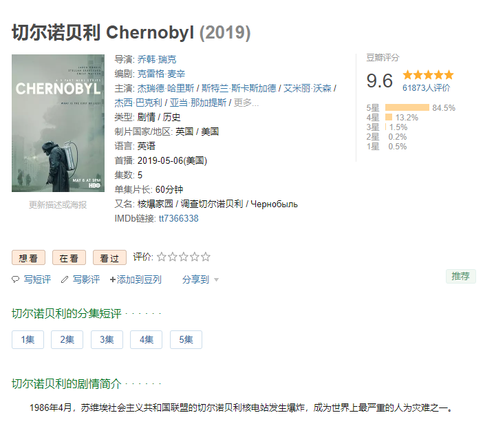 HBO迷你剧《切尔诺贝利》努力为观众重现了一段人类历史上最可怕的核灾难,自从开播后评分与关注度就一路飙升。在IMDb网站上,它已是名副其实的“第一神剧”。随着剧情的完结,人们对这部剧以及它所触及历史的讨论依然没有终止。