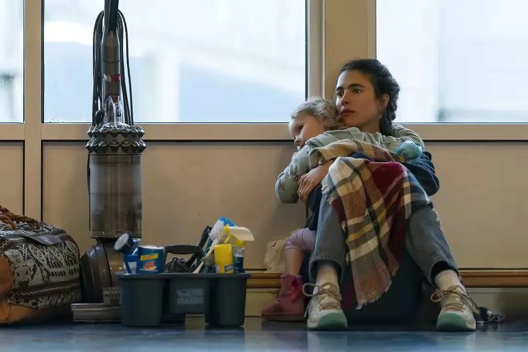影片以大女主剧的标准模式展开,且并不复杂:原生家庭一团糟的女主艾利克斯为了逃离情绪暴力的老公肖恩带着女儿麦蒂逃家,辗转在社会各种福利机构中艰难求生。