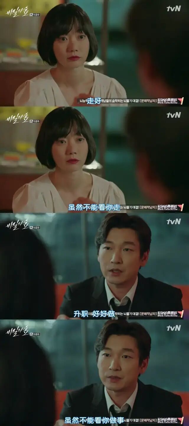 裴斗娜饰演的韩茹珍,区别于一般韩剧里的女性角色:不拖后腿,有十分的眼力价。她就像是生活里的普通人一样,知道职场险恶不公,但是又乐观的安慰自己:嘛,应该还是正直的人多吧。虽然播了四集,但是属于她的线还没有完全展开。但我很期待一个灵魂画手加持的女刑警的故事。她是这个“秘密森林”里,一点点光。刑警也是执法机构中的一员,和黄始木作为对比,她也崇尚正义,但是多了什么?人情味儿。同僚掩藏了证据,识破但不向大众点破,因为是有点可怜的大雁阿爸。拉着还不熟的老人住进自己家里,让她不用为了在汗蒸房住着做活计。这是她作为刑警,在法律法制的标尺里能为可怜的弱小的不堪的人所能做的。这一份体恤,是黄始木目前还不能感受到的,但是或许是韩茹珍可以让他有所体会的。