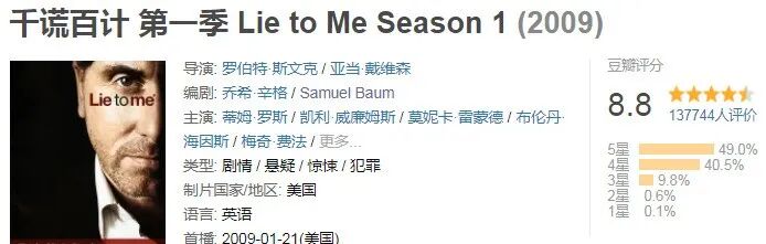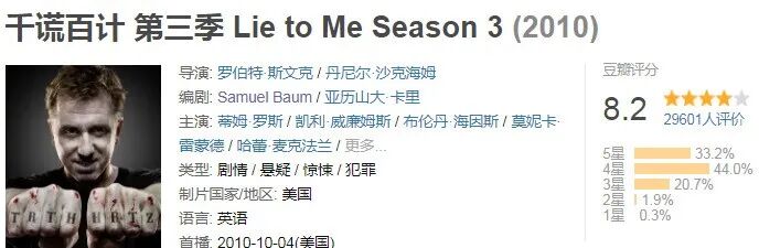 《Lie to Me》共播出三季,在中美两国都掀起了一波研究微表情的热潮。