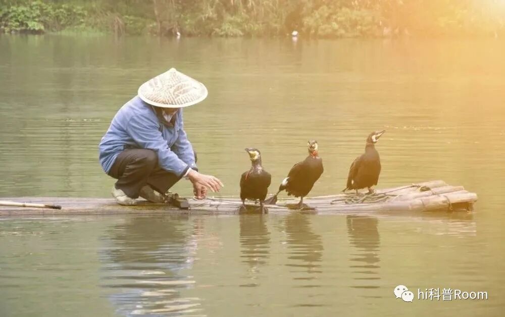 人类发现了鸬鹚高超的捕鱼技巧后,就想要把它们驯化成捕鱼工具,提高捕鱼效率。一般渔民会在鸬鹚的脖子上戴上一个绳套,鸬鹚捕到鱼后无法吞咽,只能叼着鱼返回船边。主人取下它们嘴里的鱼后,就会让它们再次下潜去捕鱼。直到捕鱼结束后,渔民才会摘下鸬鹚的绳套,给它们喂点吃点小鱼充饥。早在东汉时期,我国就有驯化鸬鹚进行渔业活动的记录。唐代诗人杜甫在诗作《戏作俳谐体遣闷二首》中也提到过它们: “家家养乌鬼,顿顿食黄鱼”,这里的“乌鬼”就是鸬鹚。可见鸬鹚捕鱼的普及程度在唐代就已经非常高了。