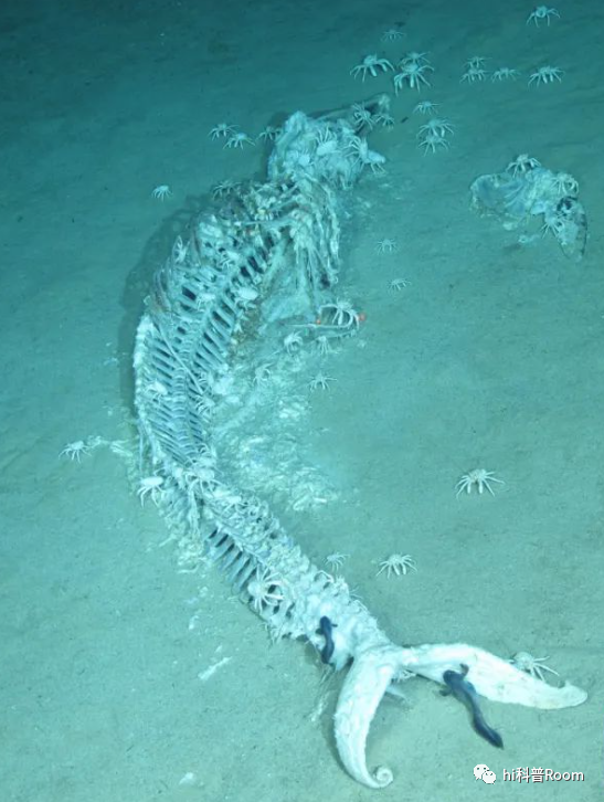 到了最后一个阶段,残余鲸落中的有机物质已经被消耗殆尽,剩下鲸骨的矿物遗骸就会作为礁岩成为海洋生物的聚居地。