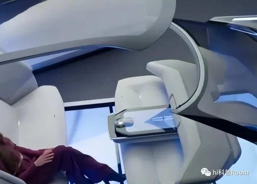 比如:他们在车内设计了四个完全朝内的座椅,以便乘客可以互相交谈聊天;座椅后面还可以升起一块硕大的屏幕;此外座椅还可以进行调整,以供车内人的休息睡觉。