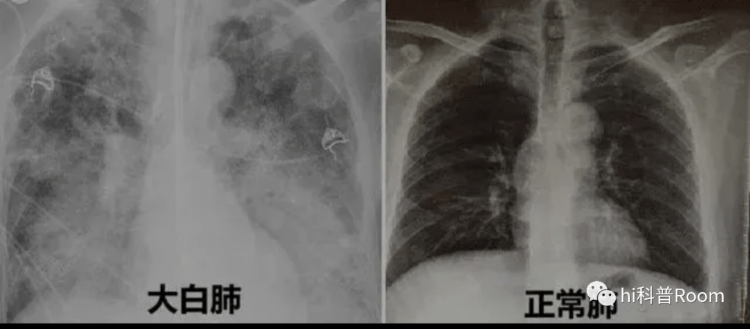 白肺的学名称之为急性呼吸窘迫综合征,肺里的肺泡大部分都是空气,因此正常人的肺在拍摄CT时,呈现出来的都是一片黑色。但如果肺里感染了炎症,射线就会被炎症细胞阻挡,拍摄出来的CT就是白色,一般白色区域超过70%就被称之为白肺。