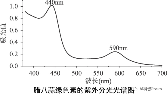研究人员在对腊八蒜的“绿色素”进行光谱分析后发现:腊八蒜中并不含绿色素,而是由蓝色素和黄色素组成,黄+蓝共同作用最后视觉上呈现出绿色。