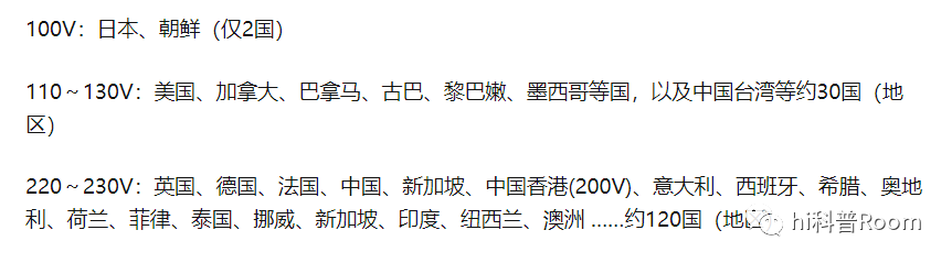 目前全世界各个国家和地区的电压大概分为3种:第一种是100V电压,只有日本和韩国在用;第二种是以美国为首的110V电压,加拿大、墨西哥、古巴和中国台湾等30多个国家和地区在使用;第三种就是亚欧国家常用的220V电压了,像中国、泰国、新加坡和印度等亚洲国家,以及英法德、意大利和西班牙等欧洲国家都是这个标准,总共包含120个国家和地区。那么,为什么会产生这么多标准呢?