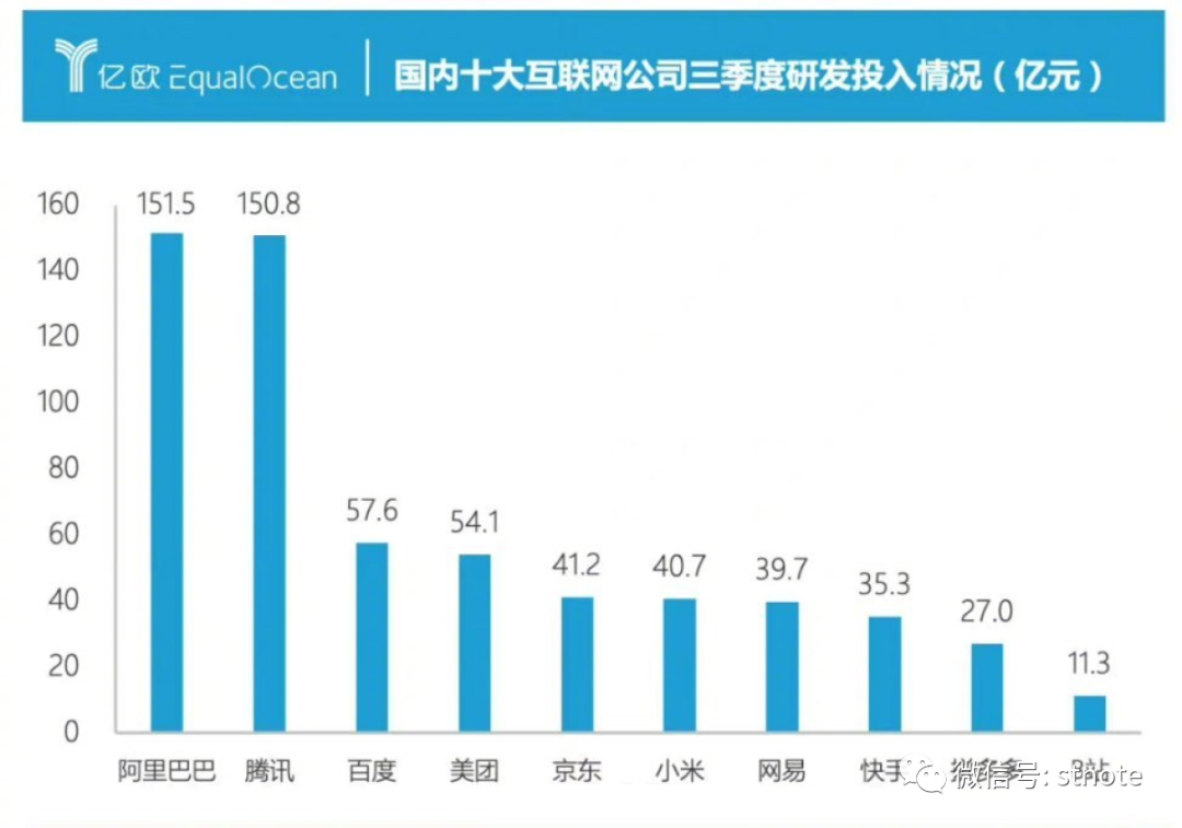 现在阿里巴巴的研发投入可谓是惊人的,数据显示,2022年第三季度,阿里巴巴投入了151.5亿元,再次位列互联网公司研发投入榜首。