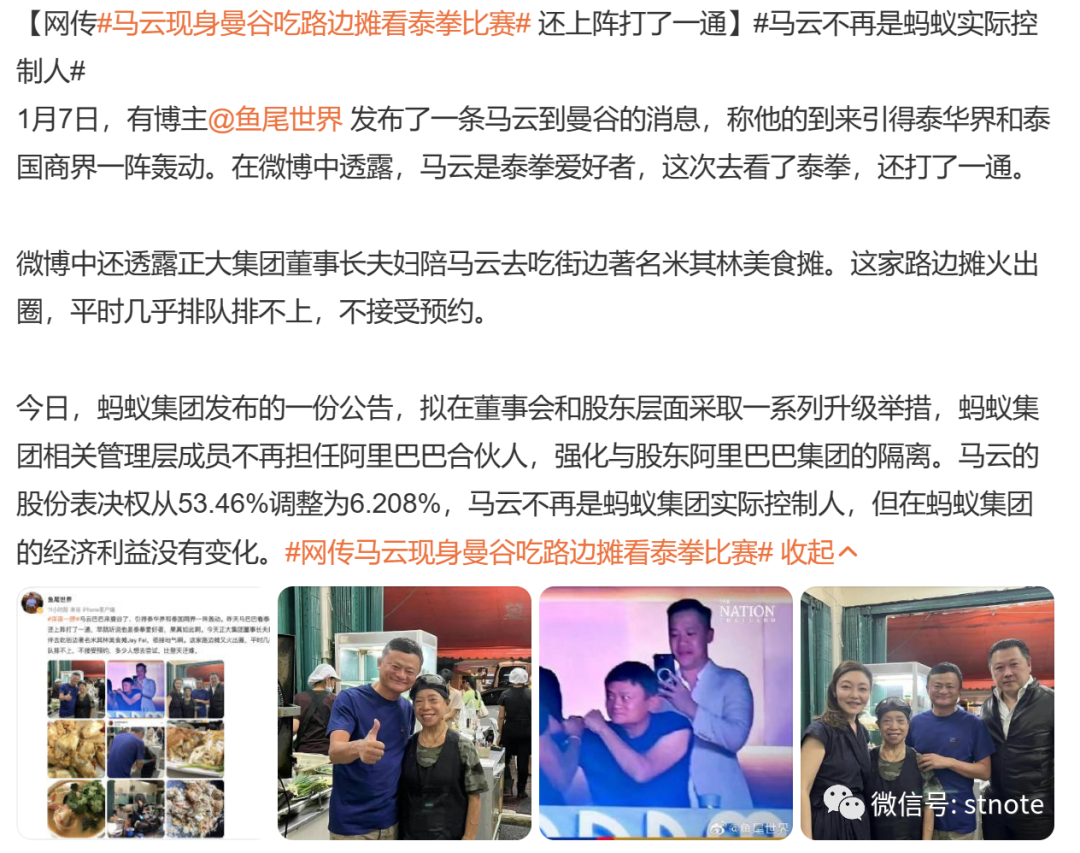 媒体之所以有这样的评论,是因为就在马云现身泰国曼谷的同一天,蚂蚁集团也发布了一份公告,在董事会和股东层面采取一系列升级举措。