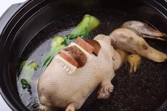 这样做出来的三套鸭肉锦味美,家鸭鲜香肥美,野鸭肉松稚嫩,而且汤汁味非常鲜,有淡淡的腊鲜味。