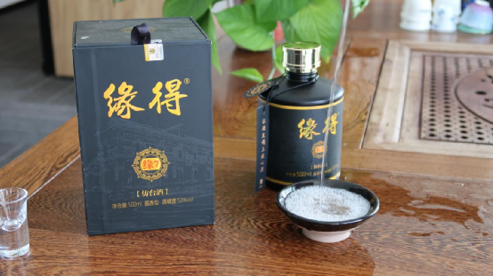 这第一瓶是缘得仿台酒,来自贵州,你别看它没什么名气,但是酒质能堪比大牌,产自茅台镇,相传酿造人是国家级品酒师游艳。