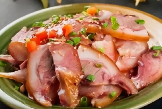 凉拌猪头肉,南北地方常见的一道凉菜,常常用于下酒,这道做法很简单,只需将新鲜猪头肉洗净煮熟,撒入辣椒面、盐巴、花椒、胡椒、耗油、葱花等,搅拌均匀即可。