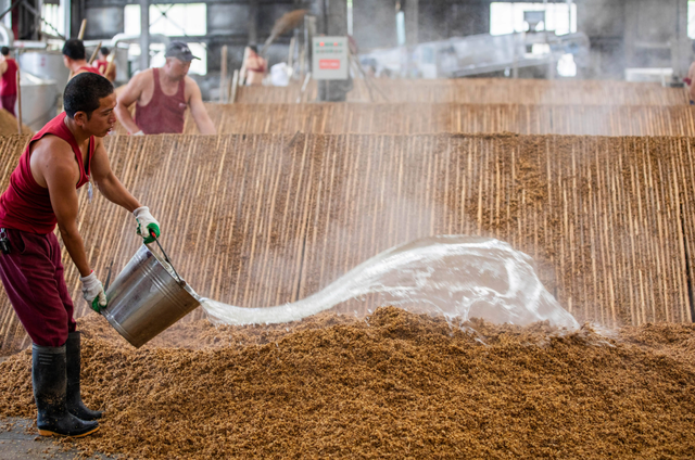 酒厂以传统坤沙工艺为酿酒手段,端午制曲,重阳下沙,历经30多道工序,165个工时,这才酿制而成,此外,还会陈放7年,让酒水越加老熟,醛类物质、杂醇油彻底挥发。