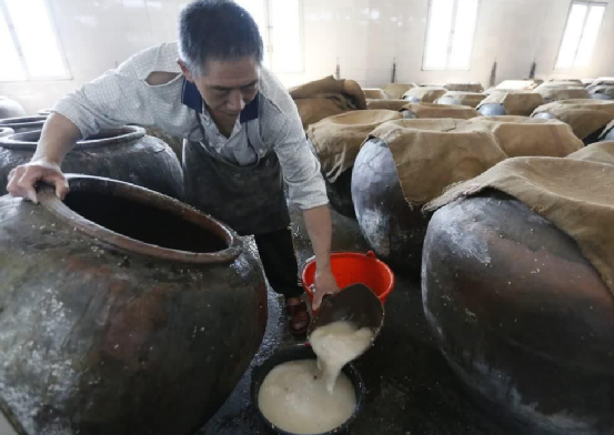 用大曲再和粮食接触,让粮食变成酒,大曲的特点就是海纳百川,具有复杂多样的微生物,有的微生物是有益的,有的是杂菌。