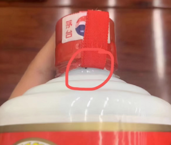 如此偷梁换柱的假酒,看起来行云流水,但也存在破绽,因为针孔都比较小,填针孔的时候只能填表面一部分,而且用的材料跟原本不一样,所以当光线照射,要不就是呈现一个黑点,要不就是比周围透光,建议大家买酒的时候拿把“手电筒”。