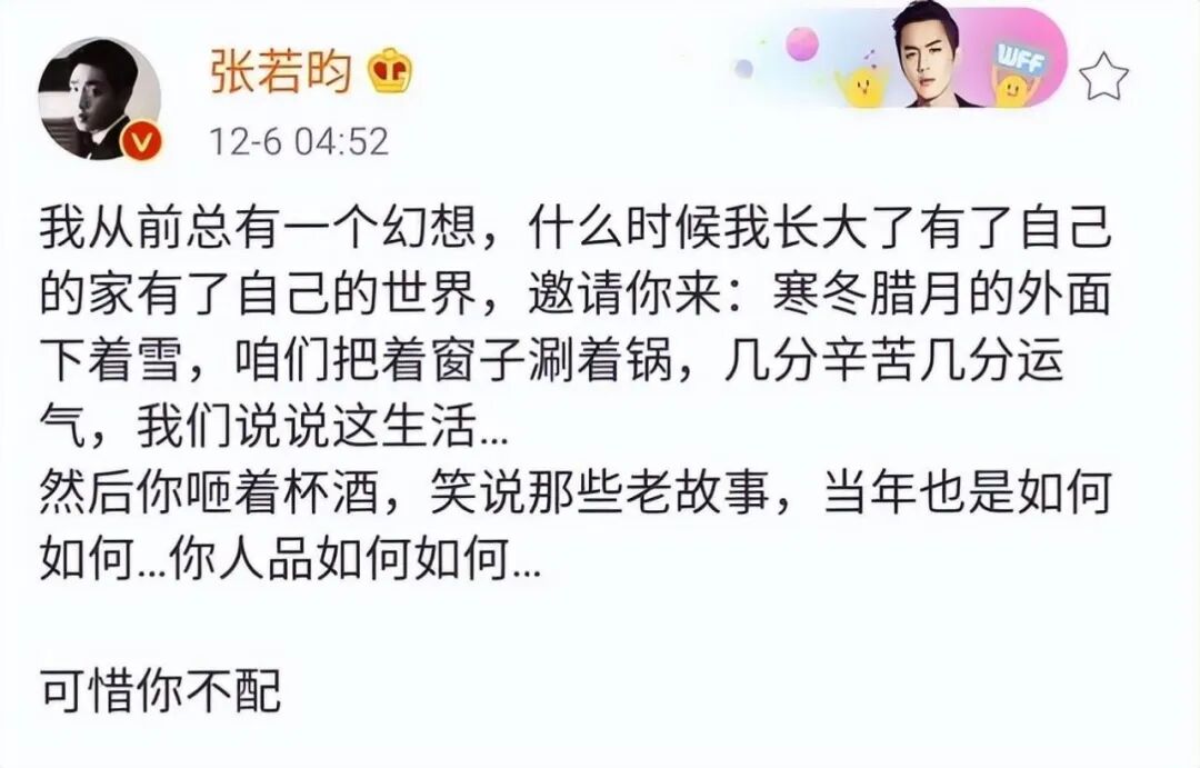 很显然,张若昀对此是毫不知情的。
