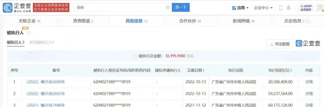这里要提一嘴的是,吴亦凡表哥吴林关联19家公司,还以自己的名义替吴亦凡开了几家公司。吴亦凡落网后,他也被追债1.39亿。果然跟着顶流做事时没少捞钱啊,这债款也够普通人过好几辈子了。