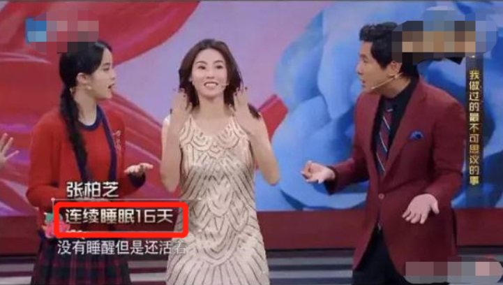 不仅如此,后来在某节目中,当时的游戏规则是:说出一件自己能做但别人做不到的事。张柏芝声称自己曾连续睡眠16天,连父母都喊不醒她。