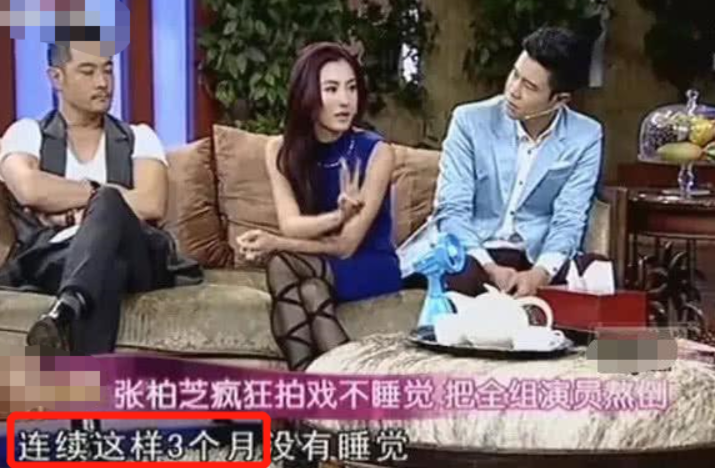 此前,张柏芝在接受采访中,说自己为了拍戏,连续通宵近三个月。每天的工作时间最少20个小时,最长可以达到24个小时,三个月内几乎没睡。