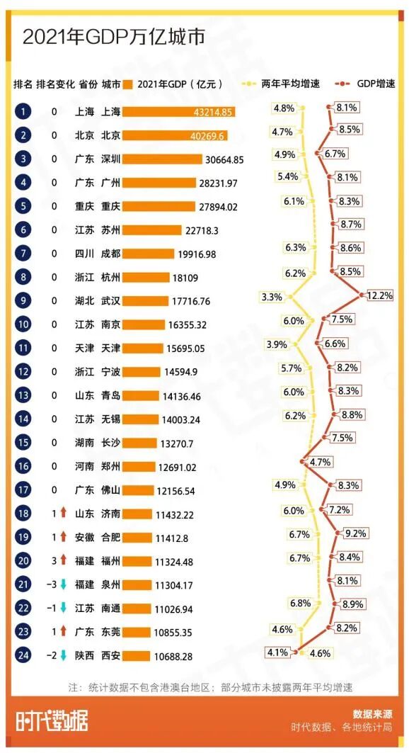 6.7%的增速,不仅在四个一线城市中垫底,在24个万亿GDP城市中,同样位居末端,只是比受疫情影响较为严重的西安与受疫情和洪水侵扰的郑州略好一些。