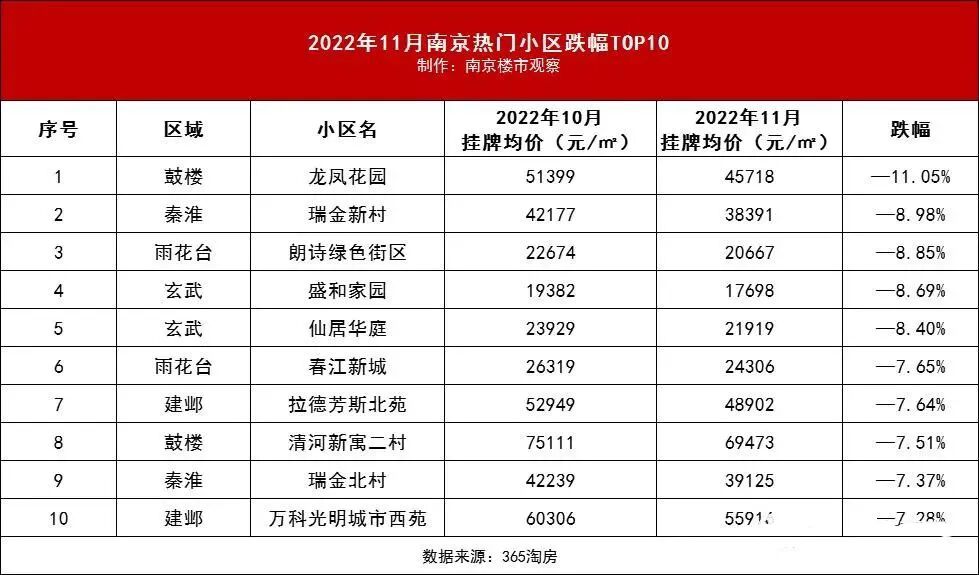 最新数据显示,南京核心区的很多楼盘,价格也在调整,如鼓楼的龙凤花园,秦淮的瑞金新村,玄武的盛和家园和仙居华庭等。