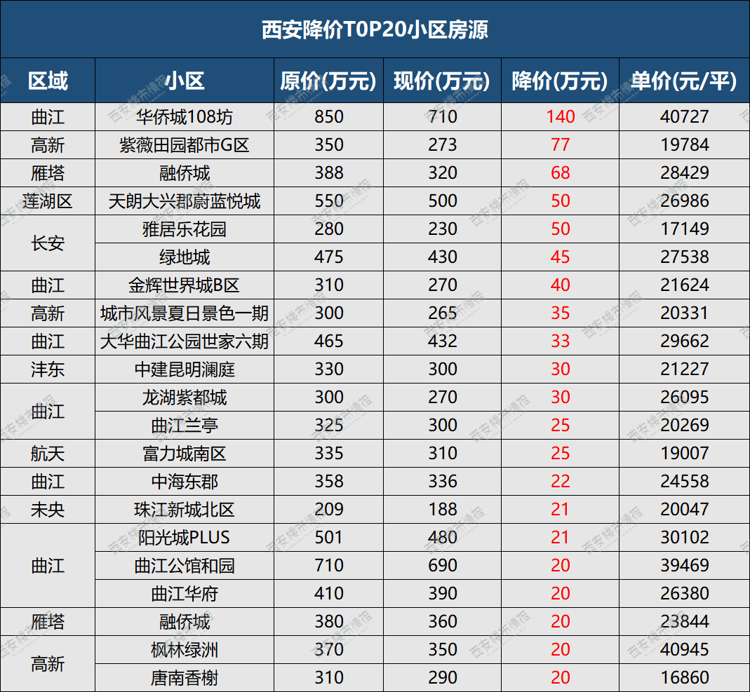 但价格大多数仍在调整当中,以西安来说,降价抛售已经蔓延至主城区热门板块。
