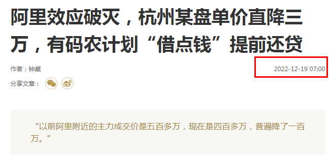 然而,杭州方面传来的12月份成交数据显示,成交量并没有托起来。