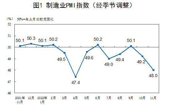 11月30日,国家统计局披露,11月份制造业PMI指数为48%,继10月份回落至荣枯线以下后,距离又拉大了不少。