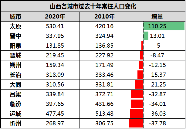 第一,太原一方面人口增量不够显著。2010年至2020年,太原常住人口增加了110万,这一增量虽然在山西省位居第一,但与其他中心城市相比,少得可怜。