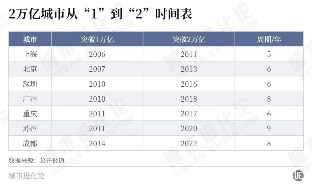 这意味着,在中国300多个地级以上城市中,GDP在2万亿以上的城市数量增加至8个,在成都之前分别是上海、北京、深圳、广州、重庆、香港、苏州。
