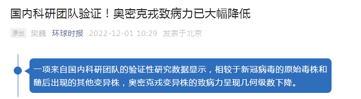 同时到来的,还有宣传拐点,奥密克戎病毒的毒性越来越弱。