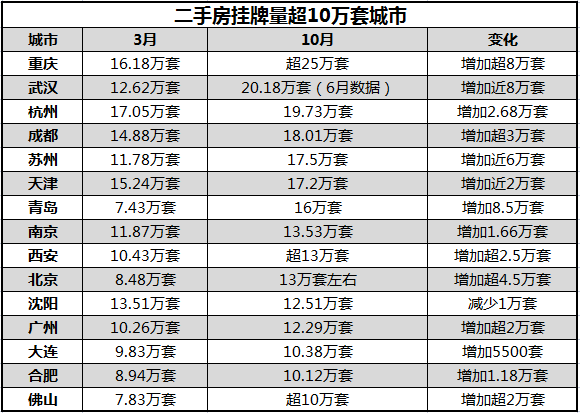 早在3月份,南京的二手房挂牌量就突破了10万套,到10月底,增加到了13.53万套,半年时间里增加了1.66万套。