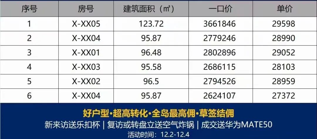 南沙新盘中铁·阅江来,不久前吹风价还在2字头,片区有新盘低价开盘后,项目最近也打出了1字头的口号。白云区某盘开启双十二优惠,推出不少一口价单位,单价1.8万/平起。