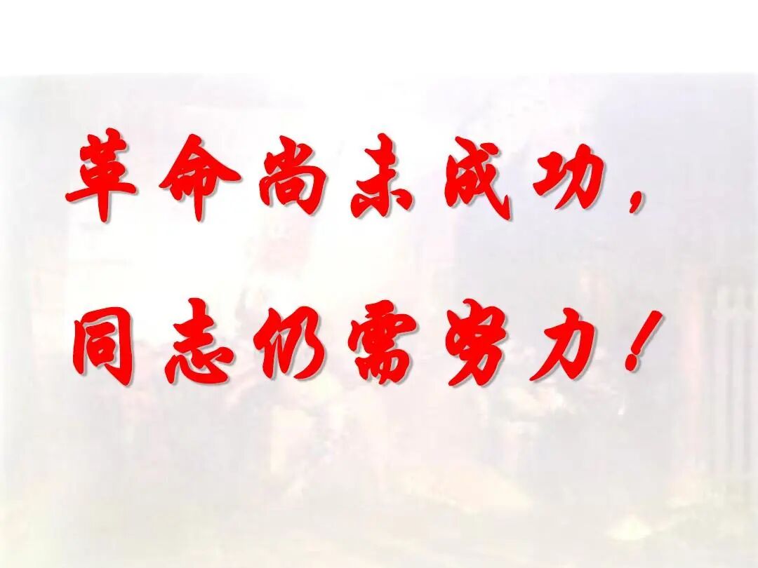 1925年(民国十四年)3月12日,孙中山先生因癌症在北京逝世。逝世前夕签署的遗嘱,包括《国事遗嘱》、《家事遗嘱》和《致苏俄遗书》三个文件。在国事遗嘱中,他总结了40年的革命经验,得出结论说:“必须唤起民众,及联合世界上以平等待我之民族,共同奋斗,”发出了“革命尚未成功,同志仍须努力”的号召。