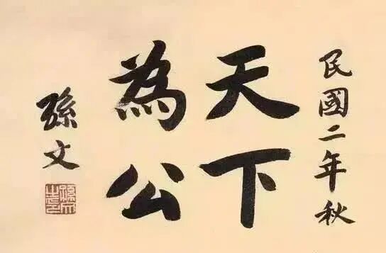 受西方民主政治和中国儒家文化影响,他将这种思想融合于革命政治之中,提出了著名的三民主义(民族、民生、民权),在其《三民主义》中,他说:“真正的三民主义,就是孔子所希望的大同世界”。孙中山先生为他心中的“天下为公”奋斗终身,完成了他的历史答卷。
