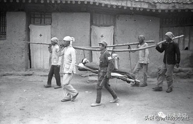 踢抬着伤员的战士