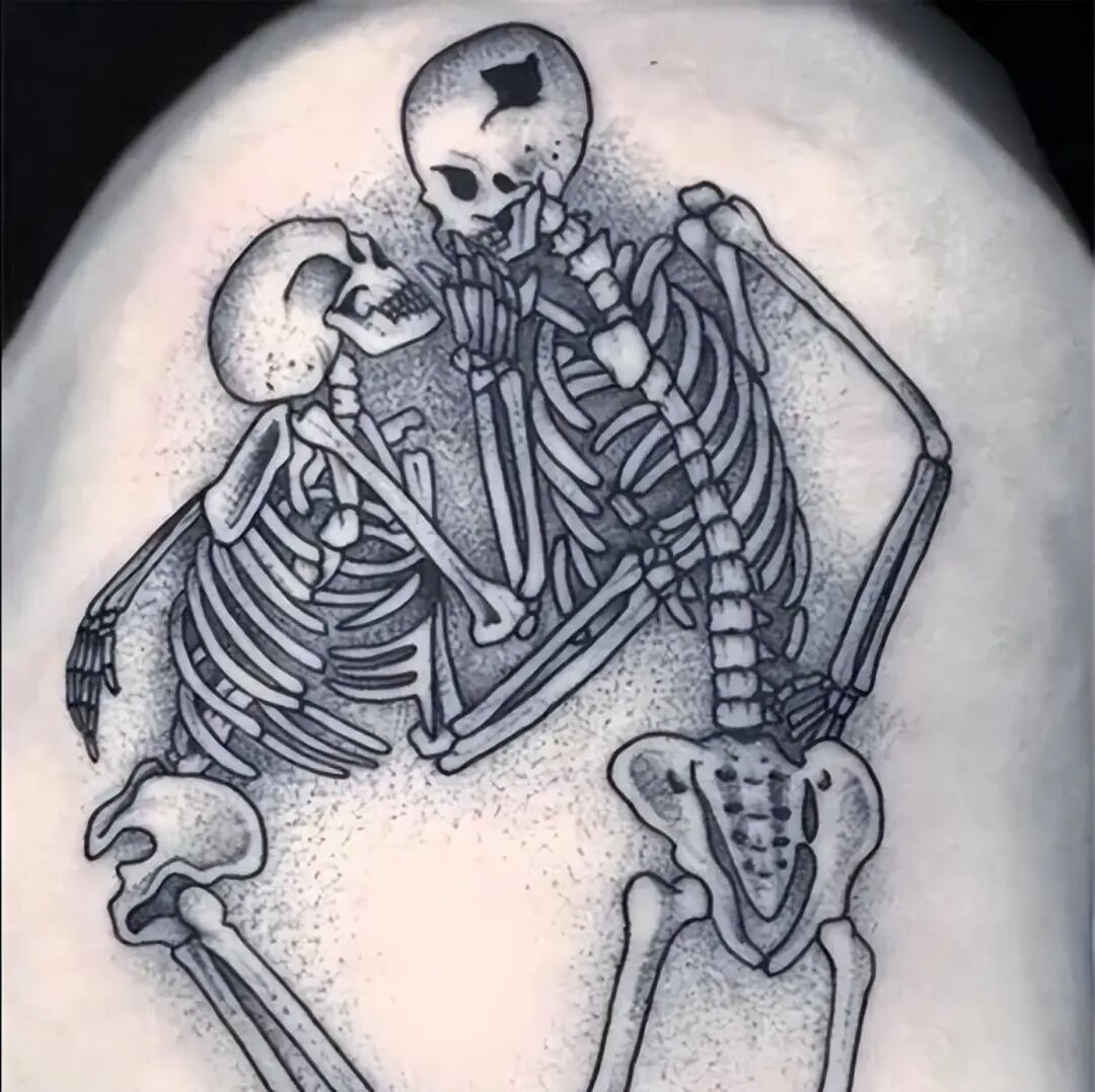 这具人体骨骸旁,还有另外一具人体骨骸。清理完周边土层,可以清晰的发现:两人举止亲密。一人侧躺着,看向对方,手轻轻的抚摸对方的脸。另一人则平躺着,脸转向右边,与对方相视,右手搂住对方的腰。两人紧紧相拥,热烈亲吻。