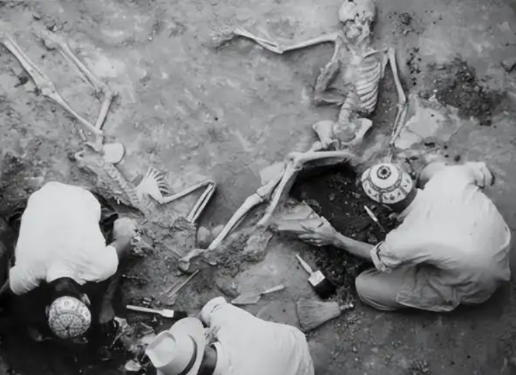 专家们快速整理好专业工具,来到凸起前,小心翼翼地铲开表面土层,泛白的硬物慢慢裸露。随着挖掘的进行,人们惊奇的发现这是一具人体骨骸,结构完整。专家们正因此发现而欣喜若狂时,更意想不到的事发生了。